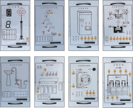 該裝置是為了配合PLC可編程控制器實驗臺使用而設計的外接演示裝置。它由LED發(fā)光二極管、大型LED數(shù)碼管、直流電機、步進電機等執(zhí)行機構(gòu)用其他外圍電路模擬實際工業(yè)控制過程中的狀態(tài),它形象生動的演示了PLC的整個執(zhí)行過程。通過該裝置,可以鍛煉學生的動手能力,能夠形象生動的執(zhí)行機構(gòu)驗證自己編寫程序的正確性,掌握PLC的實際應用,增強學生對PLC的學習興趣。演示掛箱后蓋由鋁合金注塑而成,箱體結(jié)構(gòu)合理,工藝先進,美觀大方。該裝置在演示屏上位置可任意移動、互換。