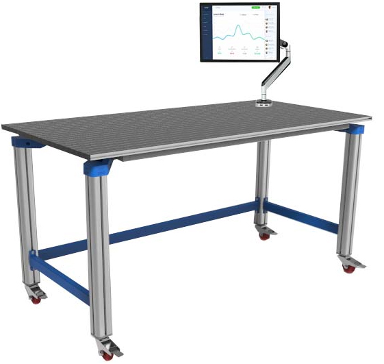 (1)采用工業(yè)鋁合金型材框架設(shè)計,臺面為鋁合金型材操作板,單根型材截面20×80mm,型材槽間距40mm,桌腳截面70×70mm。