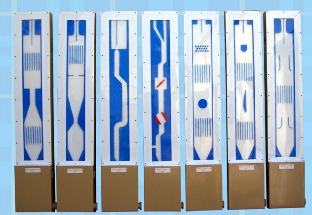 四、漸擴(kuò)漸縮:在漸縮管看到流線的逐漸收縮,在漸擴(kuò)處看到因邊界層分離而產(chǎn)生的明顯旋渦現(xiàn)象。