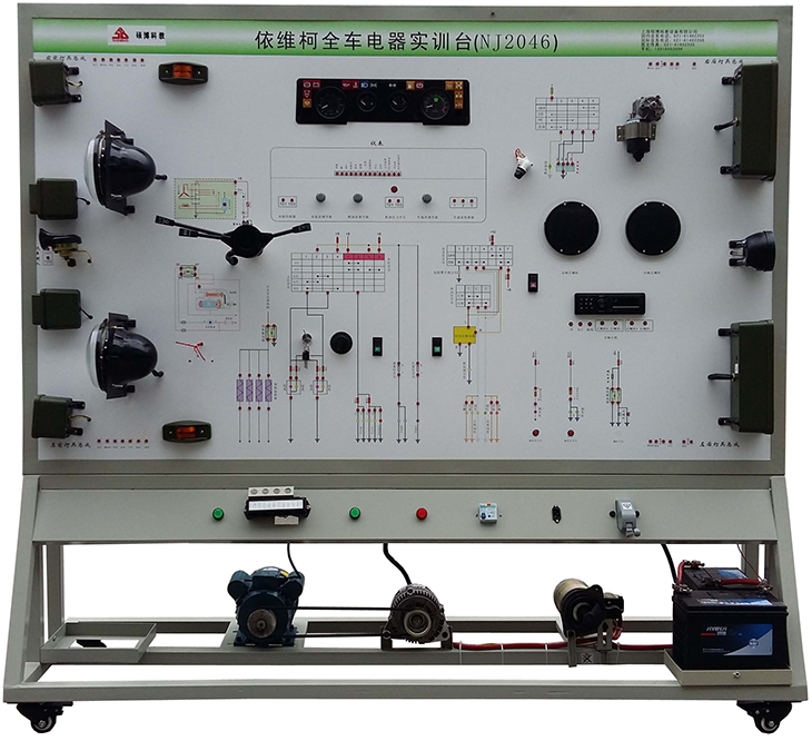 2.設(shè)備面板采用耐創(chuàng)擊、耐污染、防火、防潮的高級(jí)鋁塑板,表面經(jīng)特殊工藝噴涂底漆處理;面板打印有永不褪色的彩色電路圖;學(xué)員可直觀對(duì)照電路圖和實(shí)物,認(rèn)識(shí)和分析汽車整車電器各系統(tǒng)的工作原理。