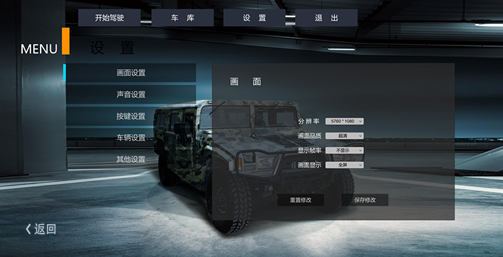 1.1.2 使用汽車動力學(xué)仿真數(shù)學(xué)模型,根據(jù)模擬駕駛車輛的質(zhì)量、速度、懸掛性能、摩擦系數(shù)等自身屬性參數(shù)和硬件方向盤的輸入值,以及平原、山地、沙漠等典型地形路面特征信息,結(jié)合硬件解析模塊得到的相關(guān)操作指令(啟動、轉(zhuǎn)向、倒車、換檔),實現(xiàn)模擬車輛駕駛前進、倒退、轉(zhuǎn)彎、速度變化、姿態(tài)變化等多種駕駛物理效果;根據(jù)油門、剎車輸入的值結(jié)合當(dāng)前檔位確定縱向加速度,實現(xiàn)模擬車輛加速、剎車等運行效果;根據(jù)車身懸掛系統(tǒng)、運行速度結(jié)合地形,實現(xiàn)模擬車輛運行中的顛簸效果和車輛姿態(tài)信息。