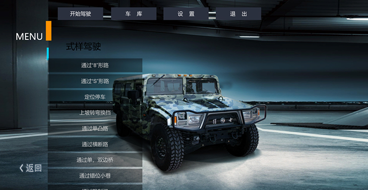 2)場地駕駛(定位停車、坡道起步、上坡轉(zhuǎn)彎換擋、通過單凸路、通過單雙邊橋、通過圓形錯位障礙、通過錯位小巷、通過限制門、上坡轉(zhuǎn)彎減檔)