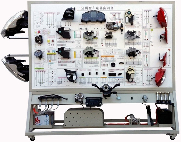 該設(shè)備采用全新邁騰B8L 2021款車身電器實(shí)物為基礎(chǔ),充分展示汽車儀表系統(tǒng)、燈光系統(tǒng)、雨刮系統(tǒng)、喇叭系統(tǒng)、電動(dòng)車窗系統(tǒng)、電動(dòng)門鎖、音響系統(tǒng)、起動(dòng)系統(tǒng)和充電系統(tǒng)等汽車電器各系統(tǒng)的組成結(jié)構(gòu)和工作過(guò)程。