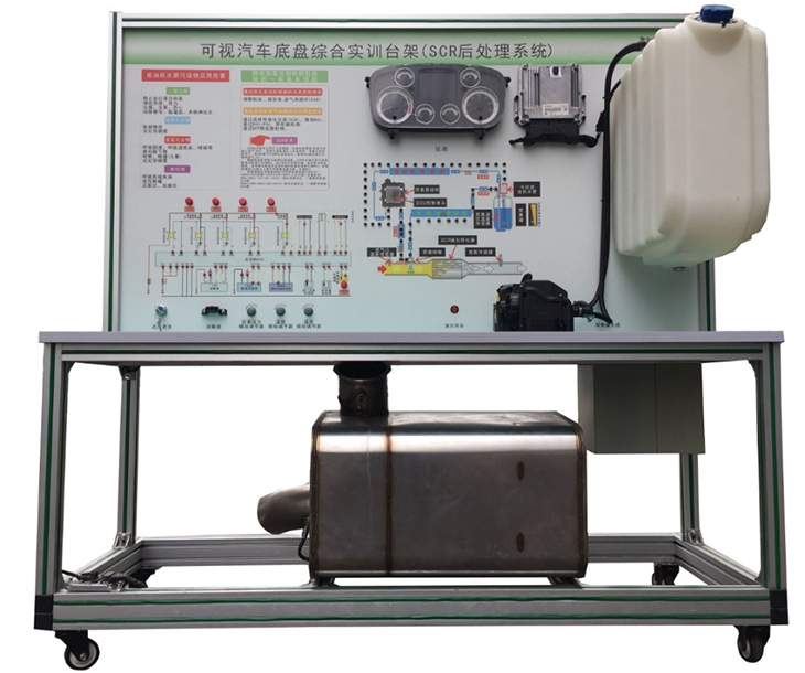 SCR后處理系統(tǒng)實(shí)驗(yàn)設(shè)備底座框架采用高強(qiáng)度鋁合金型材拼接而成,平臺(tái)面板采用4mm厚耐腐蝕、耐創(chuàng)擊、耐污染、防火、防潮的高級鋁塑板,表面經(jīng)特殊工藝噴涂底漆處理;面板打印有永不褪色的彩色電路圖,表面噴涂光油;學(xué)生可直觀對照電路圖,認(rèn)識(shí)和分析控制系統(tǒng)的工作原理;實(shí)訓(xùn)臺(tái)面板上安裝有檢測端子、可直接在面板上檢測電信號(hào),如電阻、電壓、電流等。