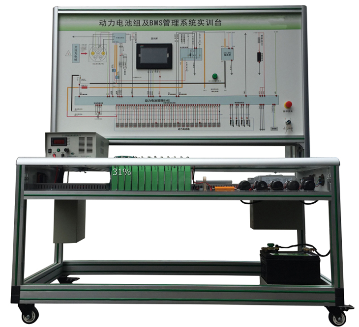 選用新能源車輛磷酸鐵鋰 動力電池包,單體電池(3.2V20AH,共24串),帶CAN總線的一體機(jī)BMS電池管理系統(tǒng),有被動均衡功能;真實(shí)地呈現(xiàn)了磷酸鐵鋰動力電池包核心零部件之間的連接控制關(guān)系、安裝位置和運(yùn)行參數(shù),以及高壓系統(tǒng)安全注意事項(xiàng),并培養(yǎng)學(xué)員對磷酸鐵鋰動力電池包(BMS)故障分析和處理能力。適用于了解與驗(yàn)證電動汽車的動力電池參數(shù)進(jìn)行實(shí)時(shí)監(jiān)控、故障診斷、SOC估算、短路保護(hù)、絕緣檢測、充放電控制、均衡等功能,并通過CAN總線的方式與帶CAN通訊的車載充電機(jī)進(jìn)行信息交互,保障電動汽車高效、可靠、安全運(yùn)行的BMS教學(xué)實(shí)訓(xùn)實(shí)驗(yàn)。